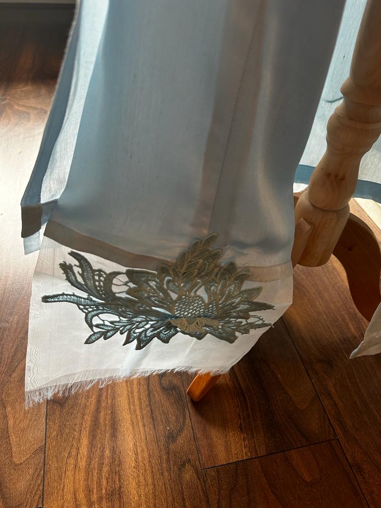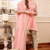 Be the first to review “Pink Chiffon Machine Embroidered Shirt And Dupatta With Sophisticated Jamawar Straight Trousers And Dupatta 3-piece suit”